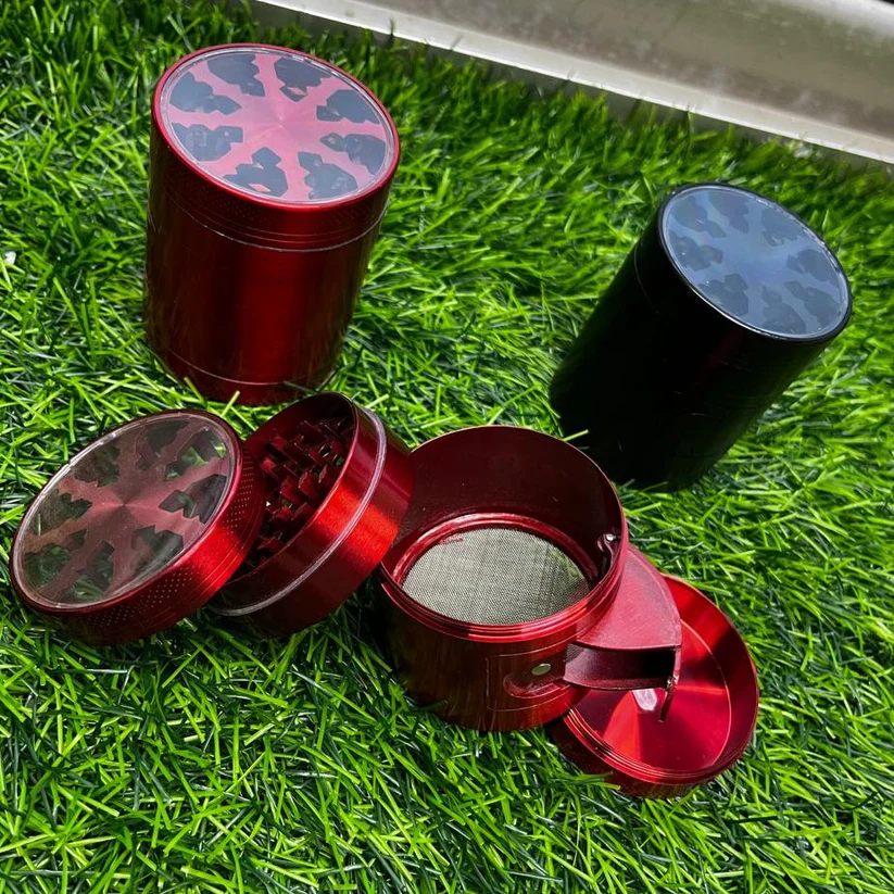 This vibrant, metallic 4-part herb grinder stands out immediately with its futuristic, colorful designโthink anodized aluminum in bold shades like deep purple, fiery red, rainbow-gradient accents, and iridescent finishes that give it a premium, almost sci-fi vibe. The cylindrical shape feels comfortable in hand, and the multiple layers (grinding teeth, mesh screen, kief catcher, and storage compartments) make it a full-featured tool for anyone serious about prepping their dry herbs.