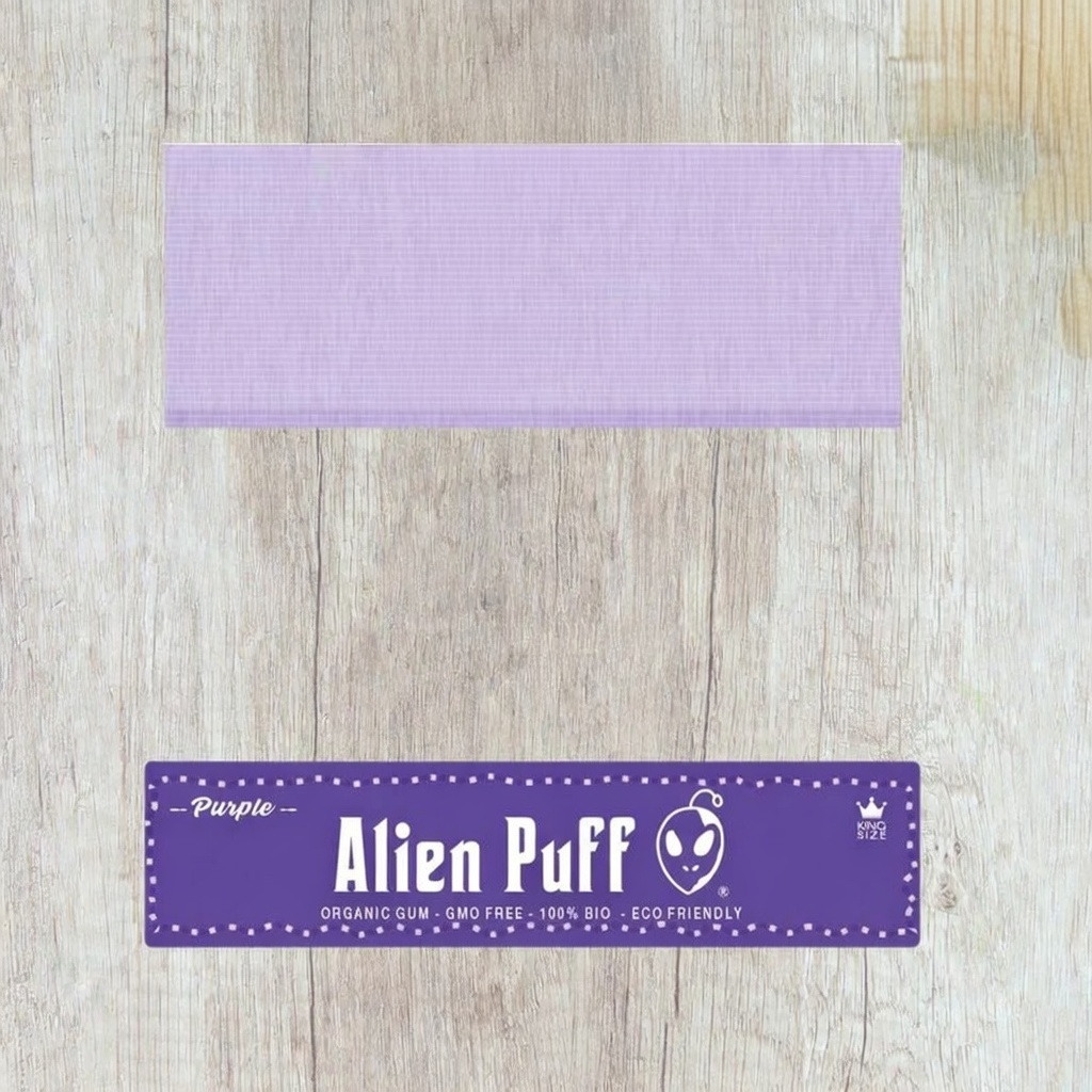 Alien Puff Kingsize Purple Rolling Papers deliver a smooth, eco-friendly smoke with organic gum and bold style. Each booklet contains 33 ultra-thin papers made for conscious smokers who crave quality and flair.