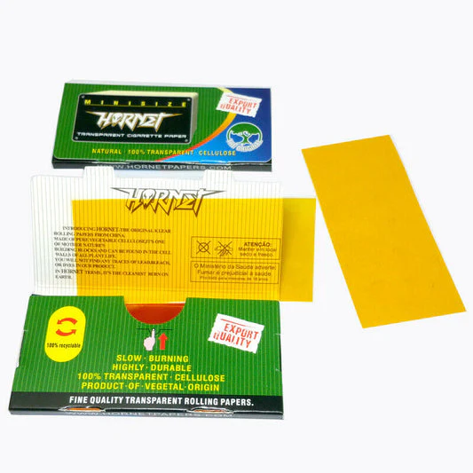 Why Choose Hornet Gold Transparent Papers? These papers combine functionality with flair, offering a clear view of your roll while maintaining a firm grip as it burns. The self-sealing design eliminates the need for glue, making them beginner-friendly and efficient. Their moisture-resistant nature ensures durability in various climates, and the gold tint adds a touch of elegance to every puff.