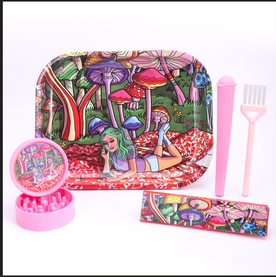 PINK ROLLING TRAY WITH PLASTIC GRINDER