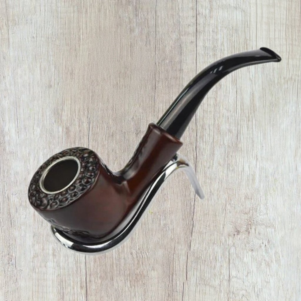 Shown here elegantly perched on a modern chrome display stand, it makes an impressive collectible or daily smoker. Briar construction ensures excellent heat resistance and aging potential—the more it’s enjoyed, the richer the patina becomes. A wonderful choice for collectors of classic shapes or anyone seeking a distinctive, artisan-quality pipe that combines ornate detailing with practical bent ergonomics.